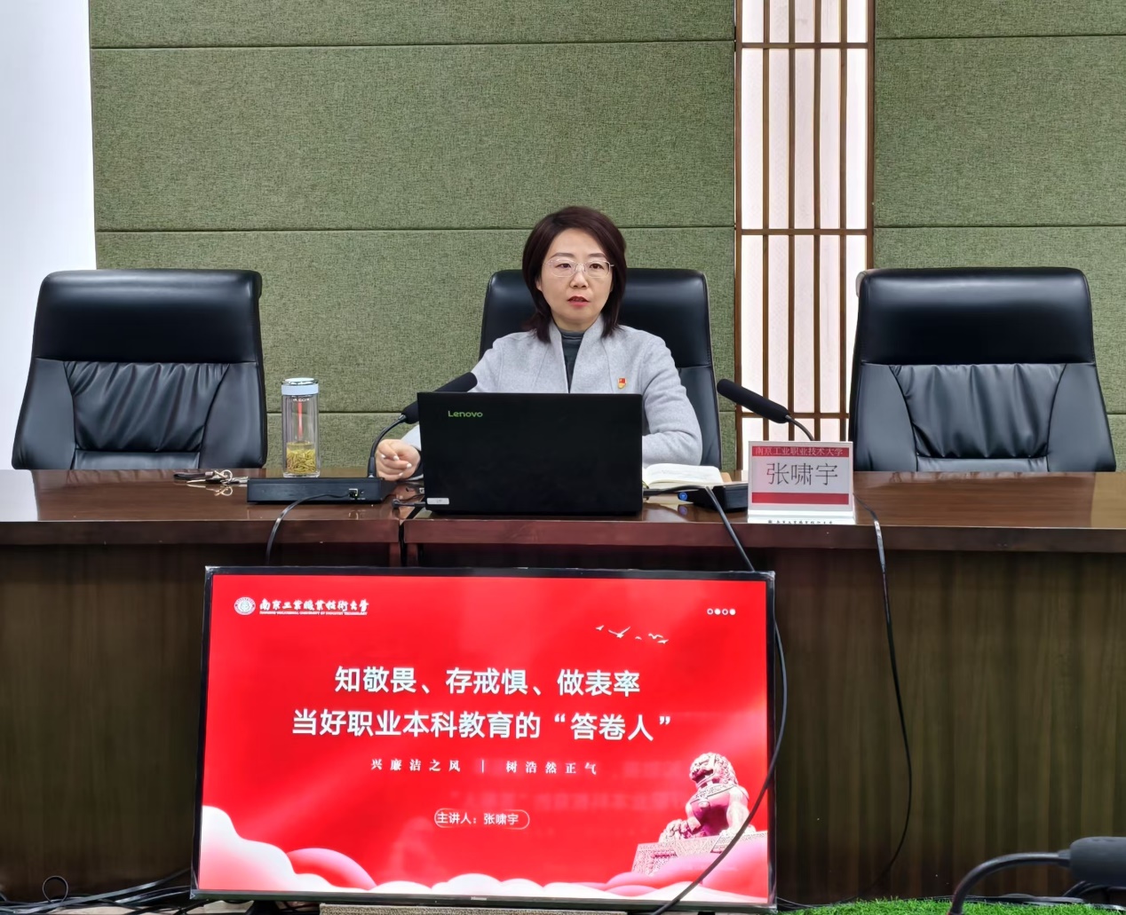 本期辅导员工作沙龙以讲座形式开展,纪委副书记张啸宇、审计处处长毛成银分别作题为《知敬畏、存戒惧、做表率,当好职业本科教育的“答卷人”》《用好政策 管住风险 守牢底线 赢得成效——审计视角下高校经济活动常见风险分析与应对策略》的专题报告。