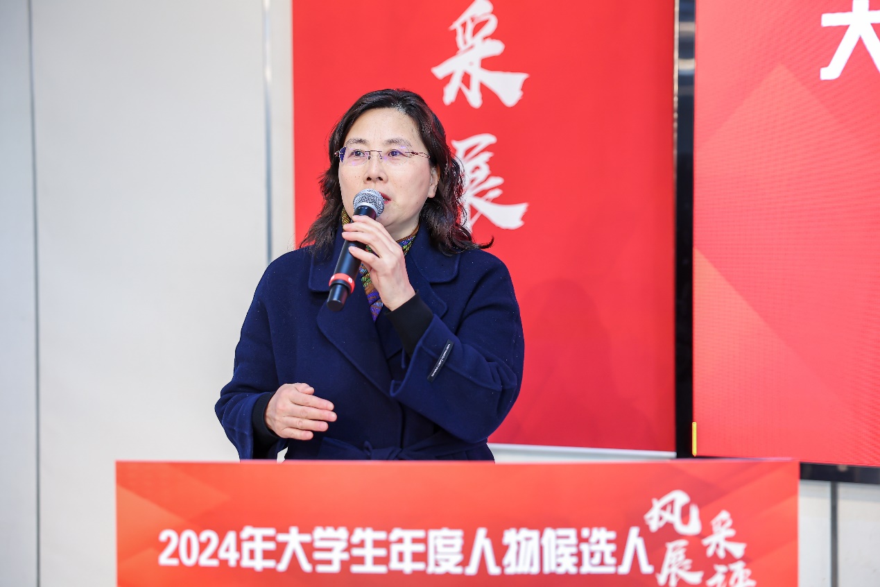 魏萍在致辞中向为本次展评活动顺利开展而辛勤付出的老师和同学们表示肯定,对入围“大学生年度人物”展评的同学们表示祝贺,她希望参评选手们都能成为一束光,激励更多南工学子书写精彩的人生篇章。希望各位同学能够以先进为榜样,仰望星空,脚踏实地,用汗水浇灌希望,用努力铸就辉煌。