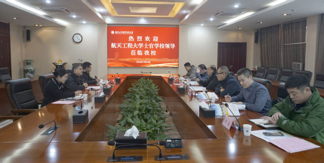 12月23日上午,中国人民解放军军事航天部队航天工程大学士官学校副校长兼教育长王金苗大校一行6人来校考察调研。学校党委常委、副校长潘旭海,以及教务处、科技处等部门负责同志在行政楼辅楼一楼会议室接待了来宾。