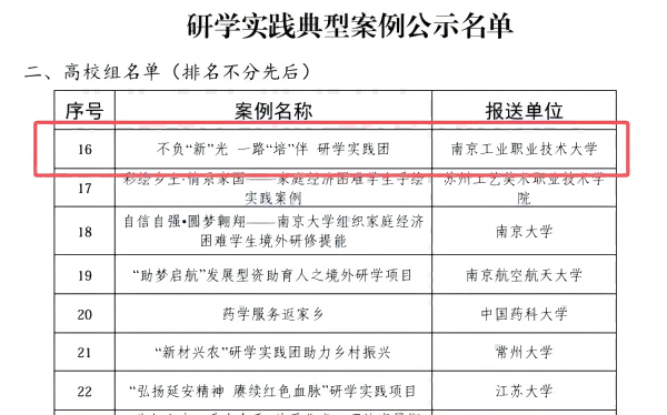 近日,江苏省教育厅组织开展的2024年“苏乡永助”资助育人主题活动评选结果揭晓。经学校遴选推荐、省教育厅组织专家评审,pg官网电气工程学院研学实践案例《不负“新”光,一路“培”伴研学实践团》获评研学实践典型案例。